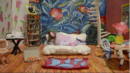 SK: My work explores a variety of topics including internet identities, solitude and the pull between our physical realities and the surreal mind. This manifests itself through the creation of colorful and vibrant installations where I combine sculpture, video and performance to create alternate realities in which these stories can play put. Play is really important in my process and the product is often visceral despite the meanings behind the work. I often uses grandiose accessories and fantastic decors to exaggerate this fragility and tension.