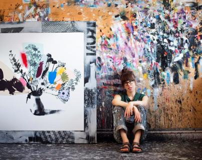 EF: I would describe my works as abstract florals. I use a lot of floral imagery in my work but not in a traditional sense. Florals are sort of a jumping off point to experiment with shapes, colors, and textures. I used to work predominantly with paint but for the past few years collage has become a big part of my work.