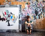 Vase of Flowers (electric blue + rainbow) – 24×24