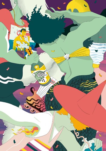 AB: Through comics strips and graphic illustration, I tell stories of meetings and encounters, where bodies and sensitivity show up and face one another. I love to take a look at intimacy. I dwell on daily situations for their weirdness. What’s the most comfortable sometimes is also the deeper, the more secret and disturbing. Lines cannot reach these feelings of intensity. I try to fill these gaps with surrealistic colors.