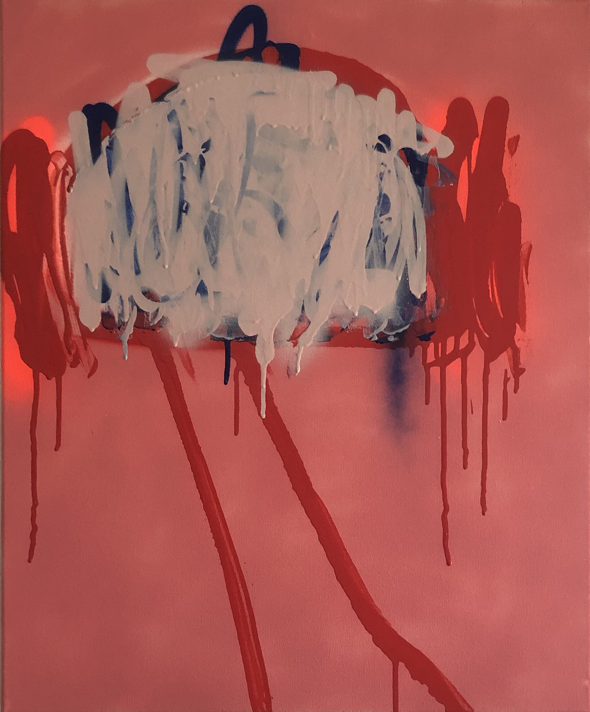 TF: I devour images on social media, look up and listen to lyrics playing on my headphones, I can spend hours sometimes getting in the zone before I can paint. Then the focus of the painting, often a motif, may take only seconds to compose, painted at speed I aim to achieve a one-hit frenetic composition whenever I can.