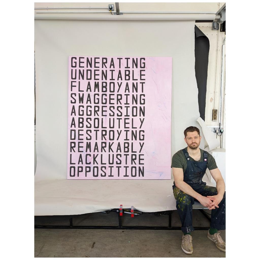 AJ: People can take it as they see fit, but we are preconditioned to read language and form images. The bodies of text in my work are not there to communicate they are a mass within a given space using the rules of language to construct their form. I find it interesting that people always try to understand the work through the language rather than the form.