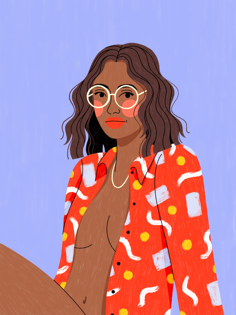 AO: I usually start sketching, see what comes up and then look up reference images, sometimes take pictures of myself in the mirror for reference, look up color palettes, and build from there. I draw everything on my iPad, so if I want to step out of my comfort zone, I take a pen or pencil and start sketching in my sketchbook.