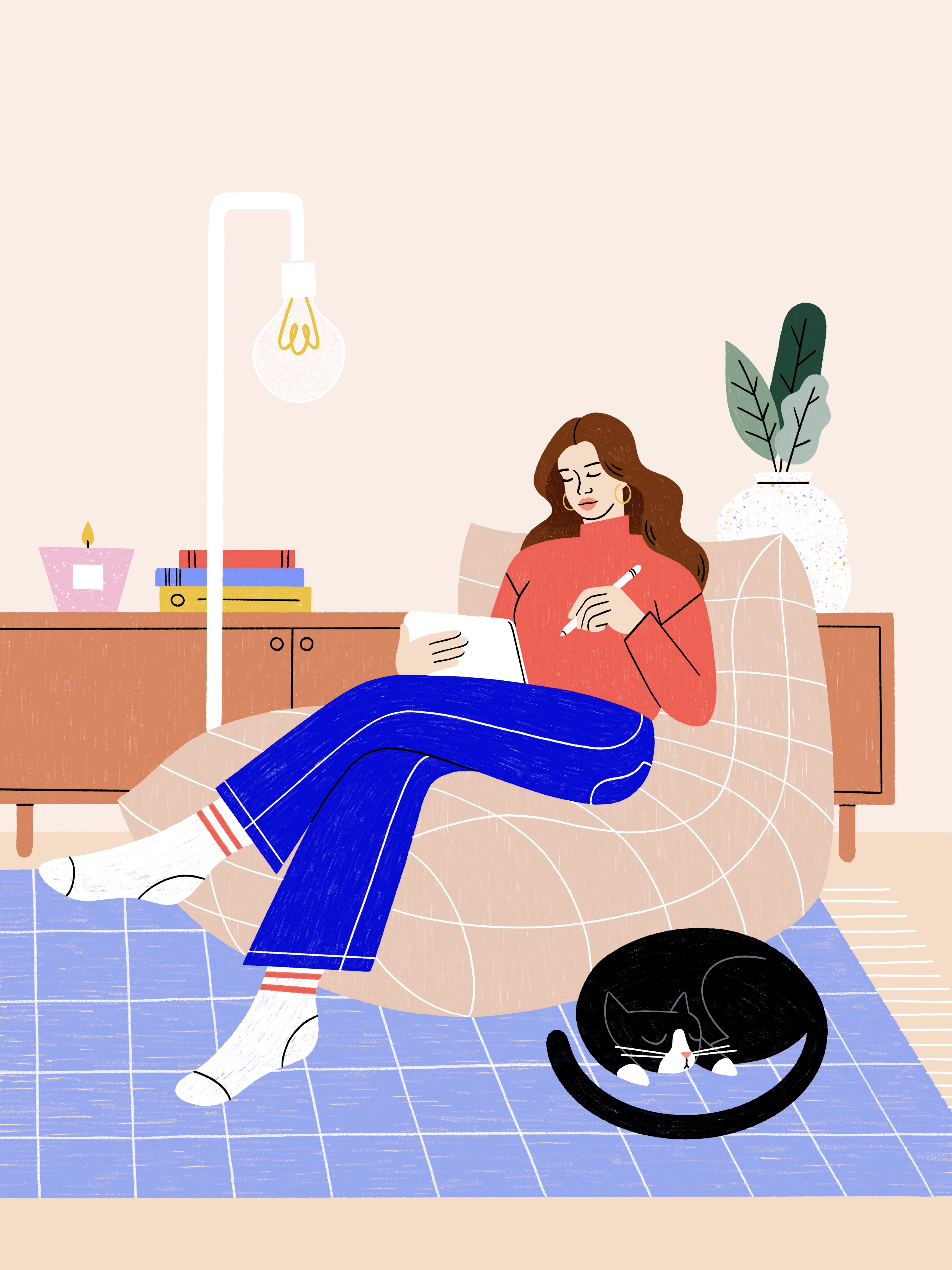 AO: I work half-time as a freelance illustrator, and I have another job on the side. This allows me to have more financial security and to only accept illustration jobs that really fit in with my vision and my style. On the days I work as an illustrator, I work from home at my desk or on the couch. I’ve just moved houses so I am arranging a new studio space in my new home dedicated to my freelance activity. At times it can get a bit intense, and other times I have a smaller workload and can draw for myself or spend more time with friends and family.