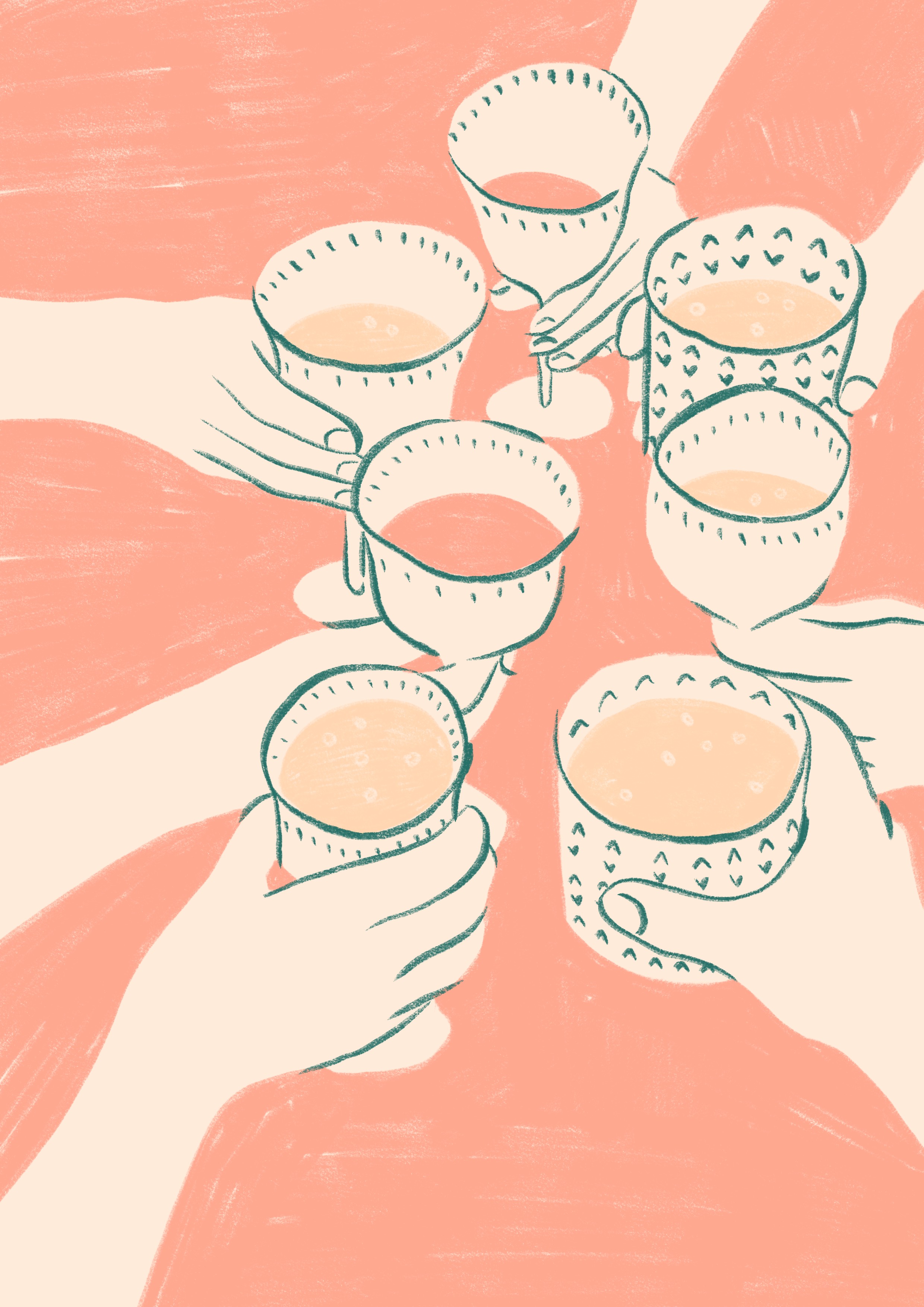LEG: Usually from everyday moments or objects. I find great joy in taking something simple like a plate of pasta and creating an illustration of it that captures the moment surrounding that meal. For example, one morning when I was sat having my coffee I decided to draw it. The image is very simple, just a spotty mug next to a cafetière but it’s become one of my favorite pieces and always takes me back to that morning coffee feeling whenever I look at it.