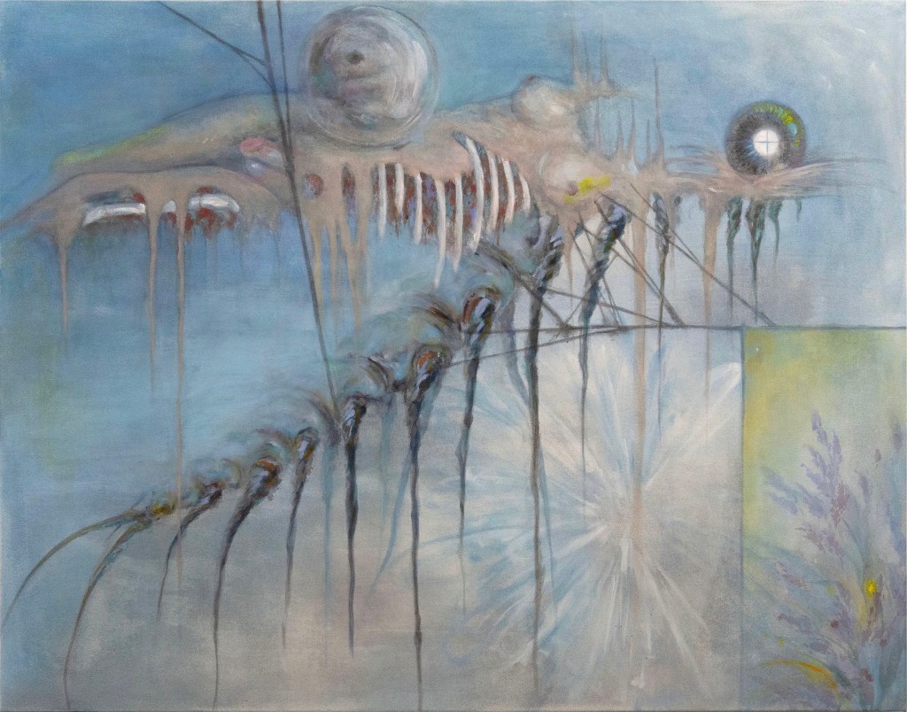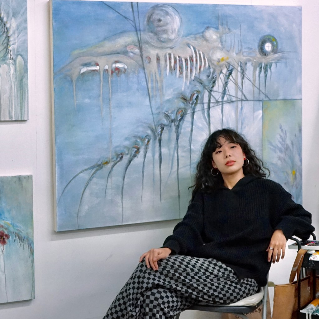 XY: I would describe my work as surrealist painting which combines both figuration and abstraction. My current body of work depicts minimal landscapes in which I seek to reflect my emotions, conscious and subconscious. I would summarize my style as a combination of Japanese aesthetic and surrealism.