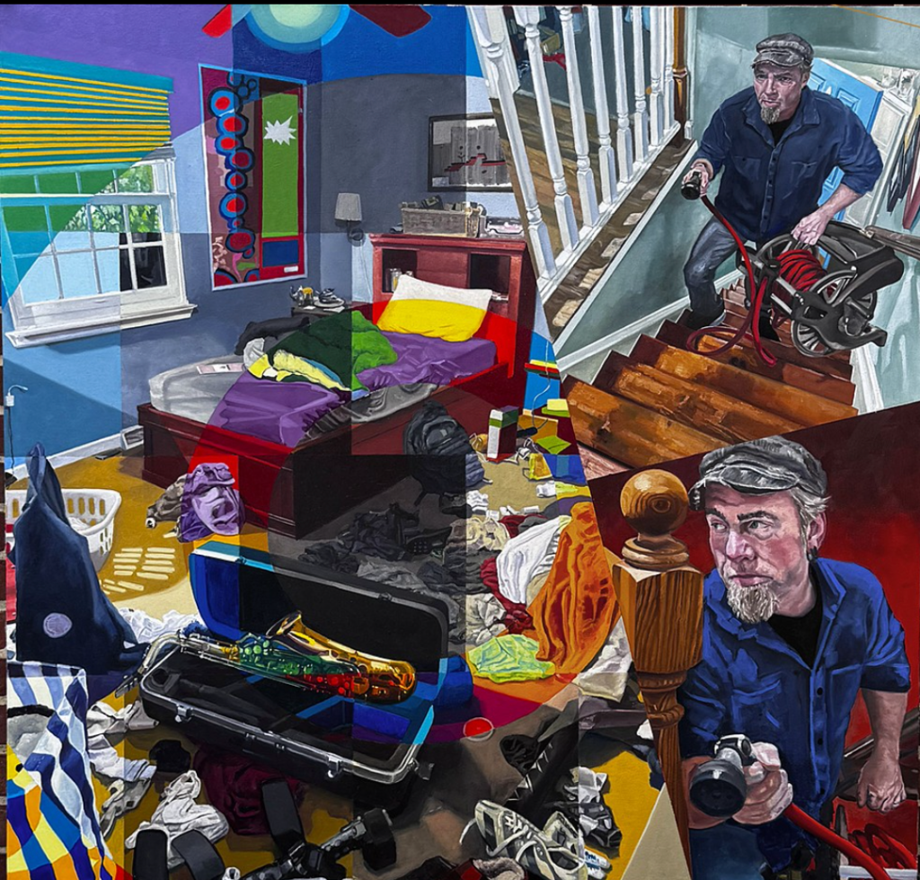 SP: I would characterize my current work as contemporary narrative/realist/allegorical utilizing figures, still life, and sometimes landscape to convey whatever story I am trying to tell. Up until a few years ago, my work was abstract/non-objective but went through a transition during the 2020 Covid pandemic lockdown.