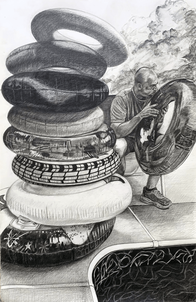 SP: I’m working on the fourth drawing in the, Hercules’ in Suburbia: New Labors as a Middle Aged Man series. The goal is to find ways to recreate all 12 labors with domestic chores along with some incidental chores that highlight the routine of daily existence. Expanding these drawings into paintings is the next step. Fortunately I have two solo exhibitions to showcase these and other works in the near future. One in June at the Art Association of Harrisburg, in Harrisburg, PA, and the other in September 2025 at the Scott Gallery at Carroll Community College in Westminster, MD.